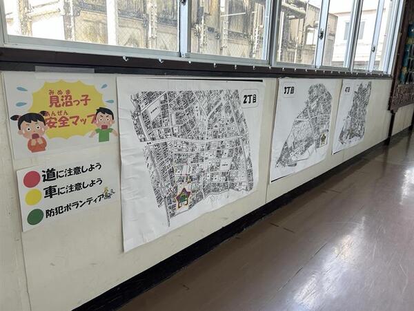 でき上がったマップは、職員室前の廊下の壁に貼ってあります。いつでも、何度でも見られます。