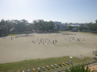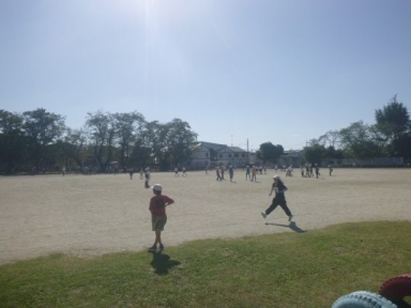抜けるような青空の日です。子どもたちはのびのびと休み時間に校庭を走り回ったり、合同体育の時間に運動会の練習を行ったりしています。