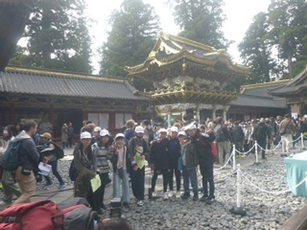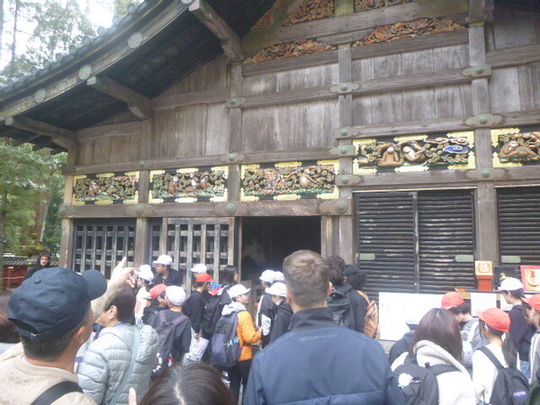 6年生が1泊2日で日光方面へ修学旅行に出かけました。バスの中ではレクをしたり、ガイドさんに日光杉並木の話をしてもらったりしながら日光東照宮へ向かいました。大勢の観光客に混ざってグループごとに陽明門、本殿、奥宮などを見て回りました。神厩舎にはなかなか見ることができないとされるご神馬の姿を見ることができました。