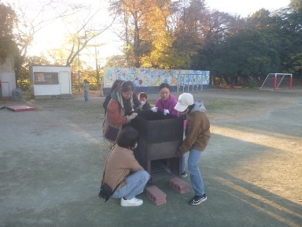 明日のレッツジョインクリーン活動の後に焼き芋をします。東大宮西口自治会協議会のみなさんと地域のみなさんの資源回収へのご協力のおかげで、焼き芋ができます。子どもたちはPTA OBの会の方と有志の方が準備している様子を帰りながら見て、明日を楽しみにしていました。