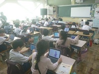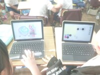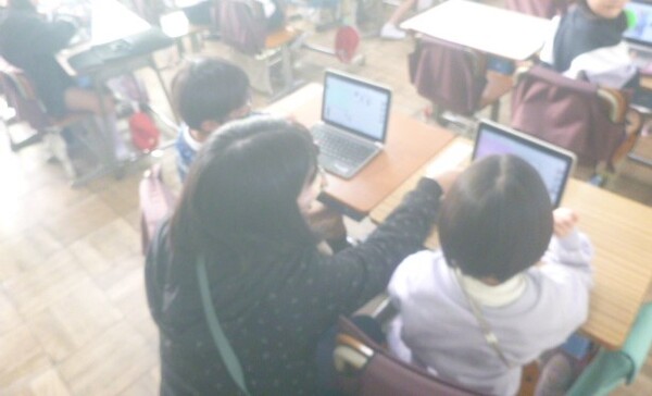 今朝のプログラミングタイムで1年生はビスケットを使って自分で作った模様や絵を動かすことに挑戦していました。熱心に取り組み、友だちに見せたり、教え合ったりしていました。