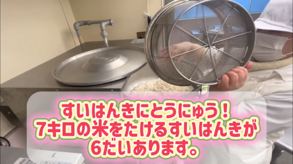 動画を見ている子どもたちは、「今ってすごい恵まれたごはんなんだね!」「調理員さんの切っている野菜の量すごい!」などさまざまな感想を述べていました。