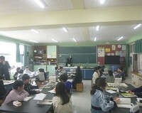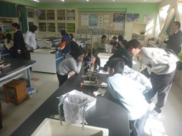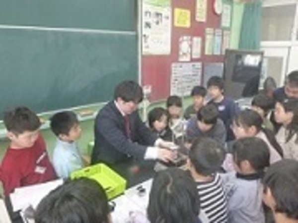 理科の学習「水のすがたと温度」で4年生が理科室で実験を行っていました。まず、水は何度で沸騰するのか予想しました。お風呂がいつも40℃くらいだから・・・70℃? 90℃? 100℃? 安全についての注意事項を確認してから、カセットコンロで熱していきます。「思ったより早く温度が上がる」「97℃までいった!」「99℃から上がらないなあ」など思ったことをつぶやきながら様子をよく観察して記録用紙にまとめていました。