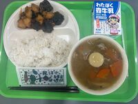 1年生も、初めて見るくじら肉に、最初は少し抵抗があったようですが、食べてみると、「かみごたえがあっておいしい!」とよく食べていました。