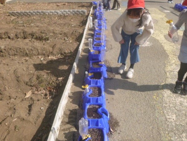 明るい暖かな日差しの中、子どもたちは校庭で元気よく遊んでいます。チューリップを植えた1年生が水やりをしている姿もありました。「チューリップの芽が出てきた!」「こっちも出たよ見て見て!」と話しにくる子もいました。可愛がって世話をしている様子が伝わってきました。