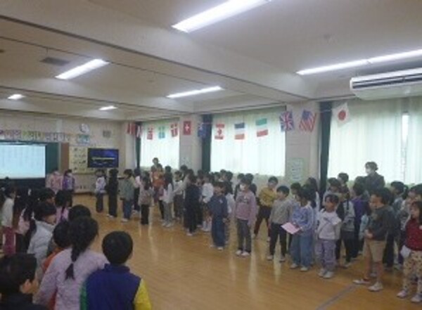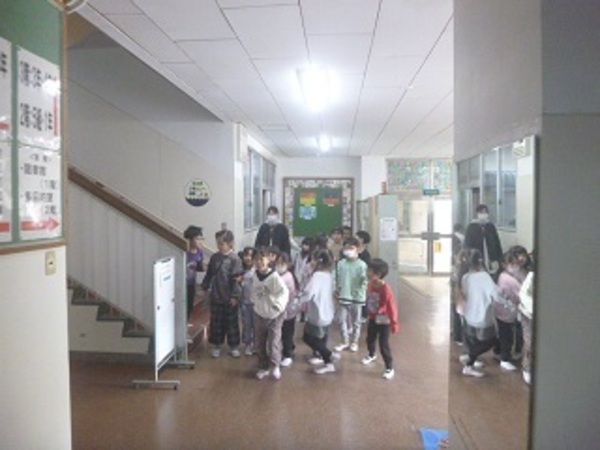 1年生が園児のみなさんと交流しました。1年生は後輩を迎え、先輩として校内を案内したり、学用品を見せて説明したりしました。じゃんけん列車をしたり歌を歌ったりして交流を深め、園児のみなさんが安心して小学校生活を送ることができるように小学校は楽しいという気持ちをもって接している様子が見られました。