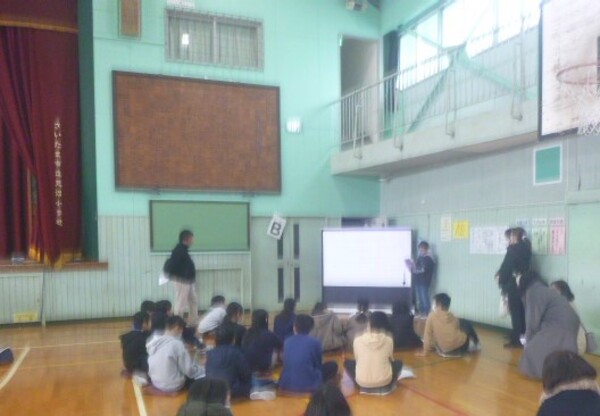 今日は5、6年生の授業参観がありました。5年生は、体育館でスクリーンを複数使用して総合的な学習の時間の発表をしていました。今まで学習したことのまとめや考えたことについて、友だちや保護者のみなさんに向かって発表しました。適度な緊張感をもって熱心に発表することができました。今年度の授業参観・懇談会は最終回となります。各学年、学級の授業参観・懇談会にお越しいただきありがとうございました。