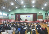 雨の朝です。いつもより一回り元気、丁寧なあいさつが響きます。子どもたちは今年度最終の登校を様々な思いで迎えたことと思います。修了式では校長からは、自分で立てためあてに向かって学習や好きなこと等に一生懸命取り組むことができたかということや周りの人に感謝をもつことができる子が多くなったことなどの話がありました。担当からは休み中の安全で有意義な過ごし方や困ったことがあったら一人で悩まずに家の方にすぐ相談すること等の話がありました。自分で生活を整え、新年度に向けて心の準備をすることができると素晴らしいと思います。