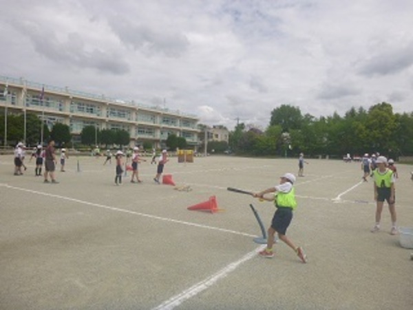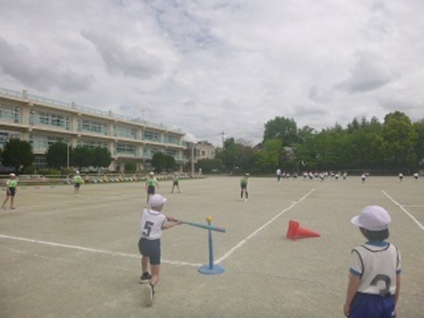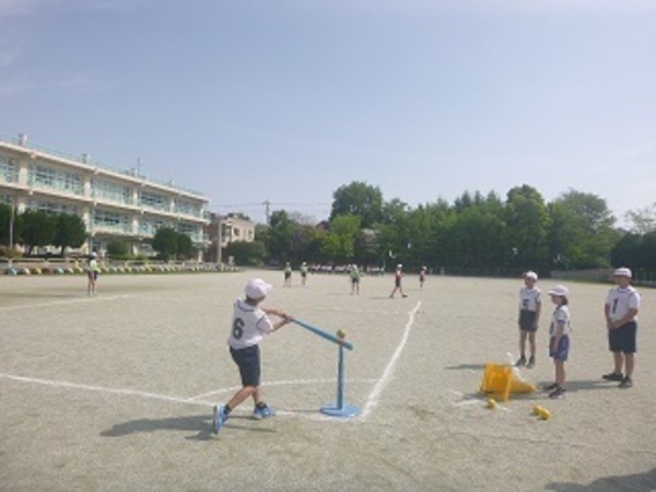 体育のベースボール型ゲーム、ティーボールの学習が行われています。「打つ」「とる」の二刀流です。「打った時ひゅう~っとボールがとんで行って楽しい!」「上手にキャッチできたときに気持ちいい!」5年生の子どもたちが大好きなところを教えてくれました。キャッチボールの時間もあります。小さなボールを投げる、とる経験が以前より少なくなっていることもあり、楽しみながら経験を積む大切な時間です。「ごめん、ちょっと強かったかな・・」「思いっきり投げていいよ」など、言葉のキャッチボールもしながら子どもたちは気持ちよさそうに体を動かしていました。