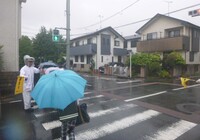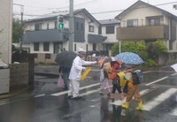 1年生にとっては初めての本降りの雨の日の登校となりました。先頭を歩く上級生は後に続く下級生の様子に気を使いながら歩く様子が見られました。1年生は昇降口で靴のはき替えや雨具の片付けをがんばりました。水はけのよい本校の校庭も今日の使用は難しそうです。雨の中でも見守りいただいているボランティアの方、交通指導員の方、PTAの方、自治会・地域の方、みなさまいつもありがとうございます。